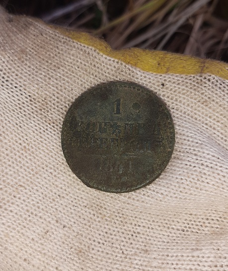 В голове крутится вопрос-сигнал монетный, выпала ложка. Провожу катушкой над комком-опять монетный сигнал. Копейка серебром 1841 г. Теперь все встало на свои места. Время пролетело незаметно, уже полтретьего дня, пора уезжать домой. Нехотя пошел к машине. Жду выходных, чтоб без мороза, надо добивать. Вложенные эскизы изображений -------------------- старый ник КорАНик