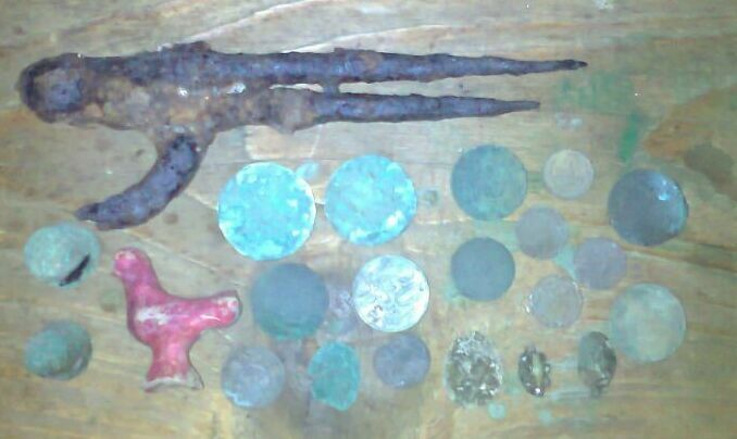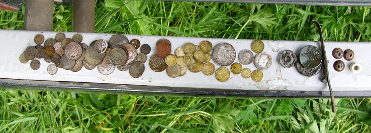 Копнул сегодня. Завтра обещают резкое похолодание. Почти по нолям. 3 к. сталинские. Правда еще бутылку нашел, не разбирался еще с ней. Керамики, черного железа и пр. много, а монет мало