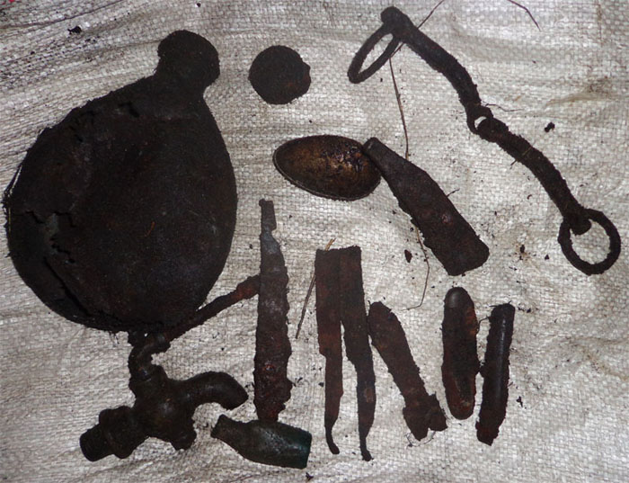 QUOTE(lehanz @ Dec 3 2014, 14:25) Подкину немного фоток, с последнего фундамента, перед самыми морозами копнул. Начал копать возле печки, полезла всякая бытовуха (фото1), прокопал где-то 2м2, особо ничего интересного не нашел, в том числе ни одной монеты. Решил зашурфить красный угол, в первом же комке выпала копейка А2, ну и пошло-поехало, монеты попадались прямо стопочками по 2-3 штуки, в итоге 23-24 штуки (одна то ли монета, то ли медальон) с квадрата 2х1м. Больше прокопать не успел - стемнело. Итог 24 монеты (в основном медь А2, А3, немного Н2 + первая Латвия), пуговичка с двуглавым орлом, какой-то шарик (украшение?), кучка заколок-булавок. (фото2) Помимо этого, попалось несколько перочиновых ножиков, бритвы-опаски (фото3). Попадалось очень много стекла, но дом горел и все стекло превратилось в бесформенные блямбы. Полагаю, что в стоял шкаф, который и сгорел вместе со всем содержимым, которое все свалилось на пол. Копаю фунды с прошлого года, из примерно 10 фундов, это первый действительно удачный. Завтра поеду добивать, думаю - этот фунд еще порадует А теперь покажите фото почищенных находок. И фляшку то же. -------------------- Приму в дар, произведу обмен, приобрету, что связано со страхованием.