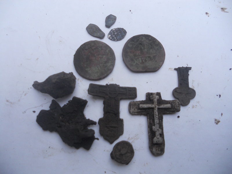 Сегодня начали шурфить одно место которое находится в лесу ни ям ни холмиков нету земля ровная керамики мало практически нету на картах это место ни как ни обозначено летом из находок по верхам копейка Петра 1 и крестики. Как в таком месте можно найти фундамент?