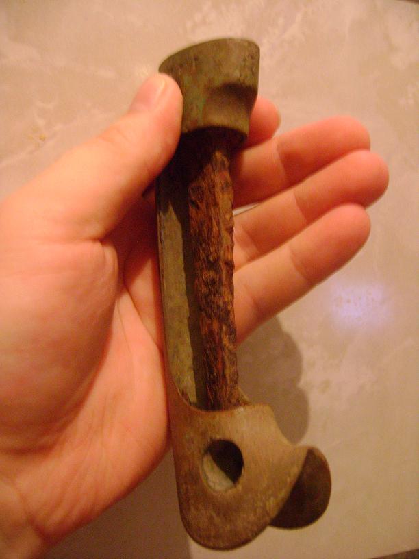 Местные говорят барский дом. Я определил там мин. 3 домовых ямы (два точно фундика): Первый. Сам дом. с одной стены ростут тополя. но яма глубокая, где-то метра 2-2,5. Еще там пруд пересохший перед этой ямой. По инфе из списк нас. мест. 1896 года вроде там была паровая мельница вот и думаю мож это мельница а не дом? Второй. Нашел случайно, когда копал, попал на кирпичную кладку в земле (кирпич клейменый). Думаю фундамент. Сверху был пятак масон. Может дом прислуги. Третий. Было углубление в земле(типичная домовая яма). находки сверху пятаки Н2 штуки 3. При шурфе попал на печку. В шурфе поднял пятак Н2 и 1/2 копейки. После чтения темы понял что копал через ж... . Думаю что взорвал % 15 около печки, до стен не дошел. А теперь самое интересное: Думаю что этот фунд точно не барина, т.к. находка около фундика или же внутри его не дворянская, а рядового. Думаю дом прислуги или еще кого но только не хозяина (Барина). Буду продолжать. Жаль фото раскопа не сохранилось. Могли бы указать на ошибки (хотя я уже и сам их понял). Находки: монеты от 1860-х до Н2. Керамика и бутылка. Вот и самая интересная находка на этой поляне из-за которой я от туда ни как оторваться не могу. Находка 2013г. У нее уже другой хозяин. Сообщение отредактировано Ricolex: Jan 24 2015, 21:15 Вложенные эскизы изображений -------------------- С Уважением, Денис.