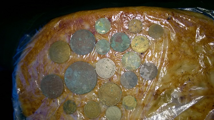 Частая ошибка-когда только начинаешь шурф, снимая верхний дерн-получаются довольно крупные комки и бывает что в них есть монетос, но ввиду того как там лежит монетка или толщины комка-не все приборы сразу цепляют цель.