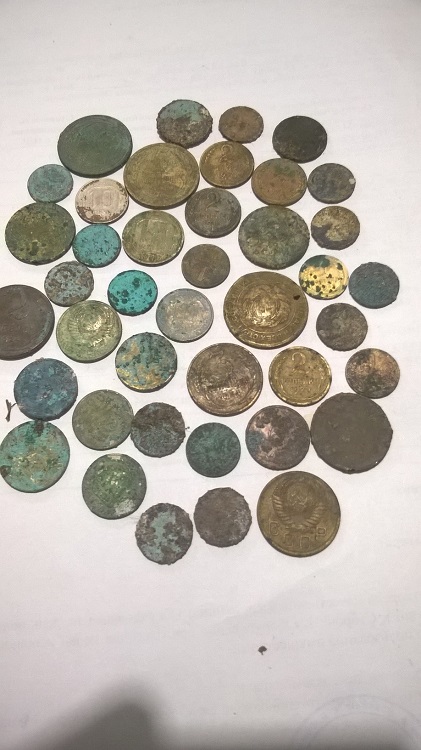 Погода сегодня ужасная была, дождь, а под конец дня дождь со снегом, но под завалом нашелся значок и грош.