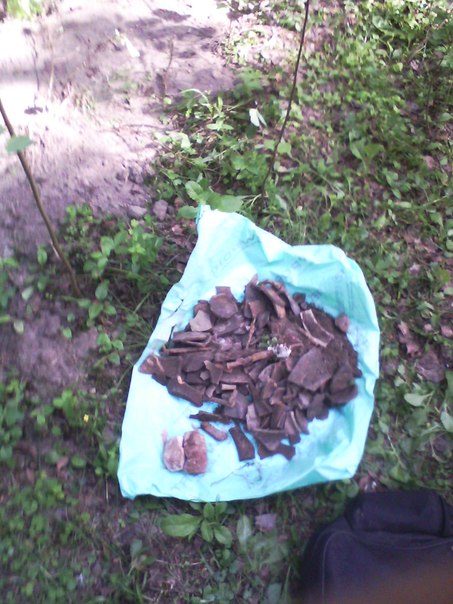 Из опыта недавних дней.Небольшой пробный раскоп метр на два и вот результат часа за 4.