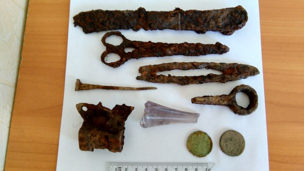 вот еще одно видео с прошлого сезона. Снимал не я, а мой комрад. На нем хорошо видно богатый культурный слой и остатки бревен(как раз для тех кто не верил, что бревна за 300 лет могут остаться) но и это еще не самые лучшие! Бывают и пободрее. Ну и в конце фото клада. Жаль нет видео с его подъемом... Как то все так обрадовались и в пылу радости только сделали фото. Ну и фото лопат с находками с этого шурфа.
