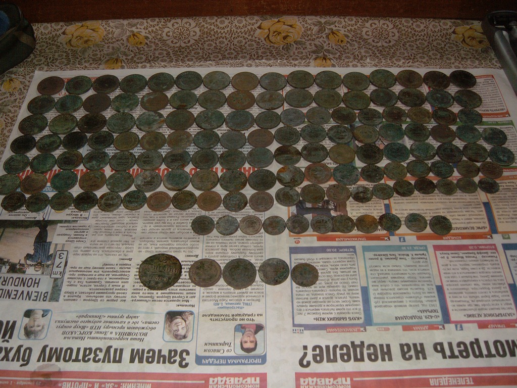 Ну что, продолжим... Счастливый сезон пронёсся незаметно..."Грибная" поляна не давала покоя. "А вдруг там ещё что-то осталось" - мелькало у меня в голове. Но все воспоминания о том дне проносились как-то безболезненно что ли. Учёба в универе, студенческие подработки, "семейная" жизнь забивали память о прекрасно проведённом лете... Но тут весна подкралась незаметно! И...Ну конечно же первым делом...деревня!!!! Мной было принято решение-шурфить. Шурфить, шурфить и шурфить до посинения и не изнеможения...Собирал монеты по одной. Прибор пищал постоянно - чёткие монетные сигналы. Собрал много...Устал...Пригласил знакомого по двору забулдыгу помочь мне перелопатить кучу грунта за вознаграждение. Он не смог устаять... Новичкам везёт...Я это понял когда он позвав меня указал пальцем на железную, сгнившую от времени коробочку...Это были они - дореволюционные копейки поздних царей. Орал я долго. По всякому орал. И было ясно - бить мне это место ни один год....Продолжение следует! Вложенные эскизы изображений -------------------- Куплю дореволюционный текстиль платки,рушники,кокошники,рубахи,кафтаны,сарафаны,юбки,пояса,монисто
