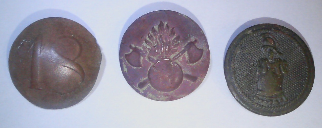 Скажите пожалуйста по первым двум пуговицам имеют они отношение к 1812 году? Третья уже знаю что францы саперы. Спасибо.