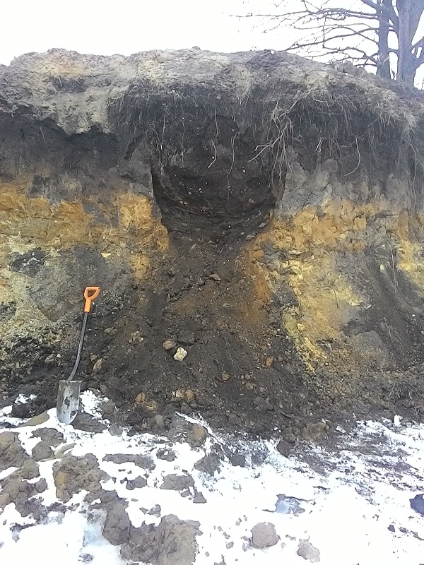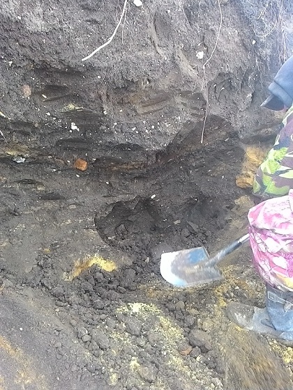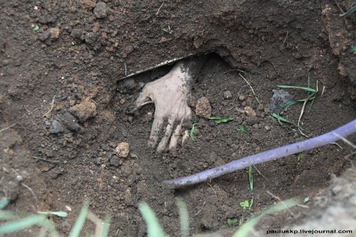А вот на прошлой неделе копали... На месте бывшей деревни разрыли карьер песочный, прямо возле церкви варвары... вот кто культурный слой нарушает. Монет там конечно ребята много набрали и серебра... Сейчас запретили копать, но карьер остался и в одном месте видимо погреб был и он получился как бы в разрезе. А дно карьера ещё метра на 2 ниже погреба, копать очень удобно только лопатой поддевай земля сама сыпится вниз. Первый раз копали снизу вверх, начали снизу думали обрушится, но пришлось почти до верха срезать. На глубине слой пепла, углей, видимо пожар был, выше пошли кирпичи много керамы , стёкла и кости. Монетку напарник увидел глазами в верхней стенке, в потолке так сказать, копейку А-3 и это на метр от поверхности. Попробуй ее прибором с поверхности найди, мало того выше неё была большая жестянка. Половину погреба осилили, находок не густо ... к той копеечке ещё пол копейки Николая, гирьку и пол крестика. Умаялись конкретно зато ломку на неделю сбили..