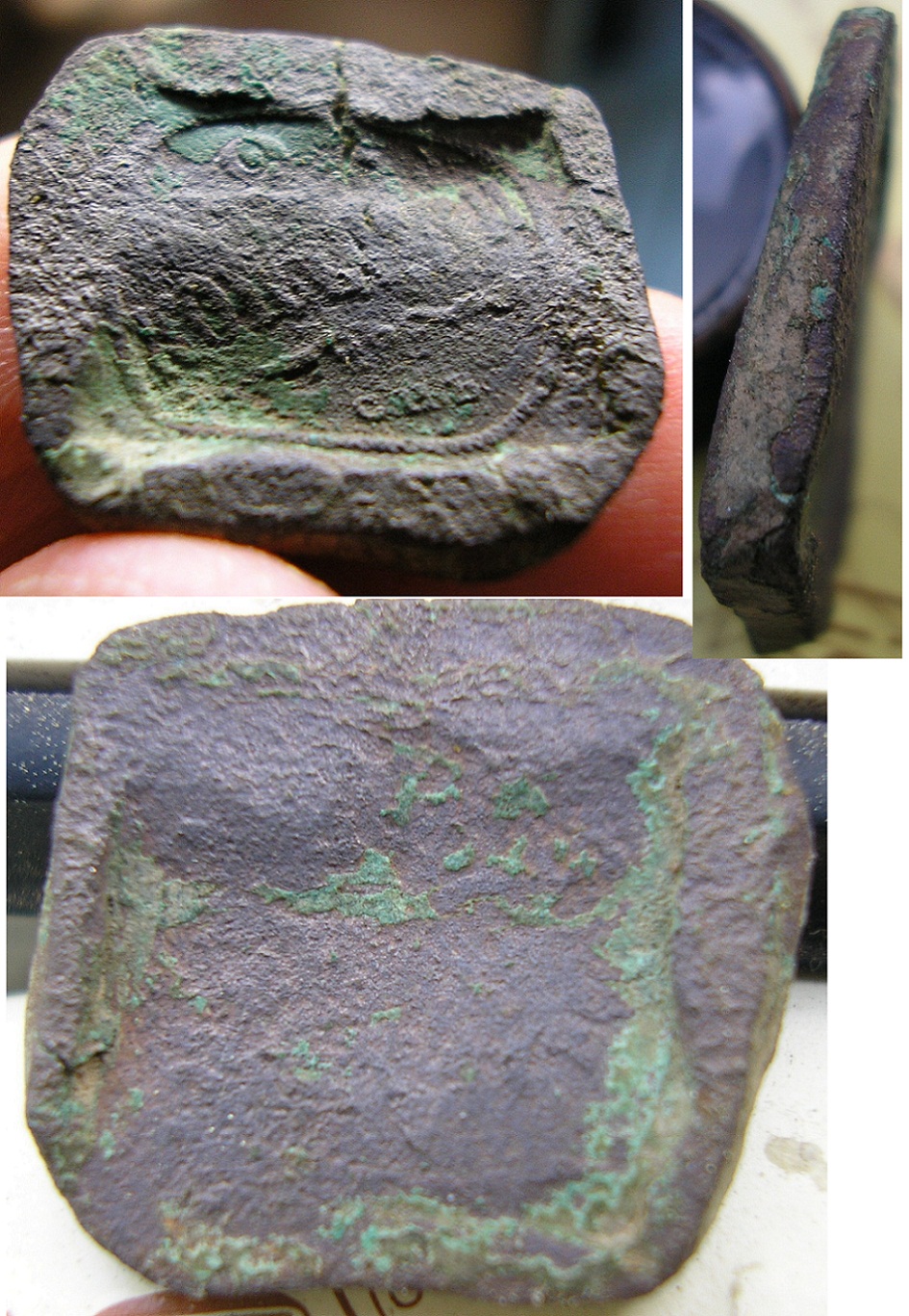 QUOTE(Евлампий @ May 16 2012, 19:44) Всем Доброго времени суток. Попалась вот такая квадратная медяшка, на которой написано с одной стороны, как мне кажется, "2 копейки СПБ" Время её не пощадило Размер: 2Х1,9см. толщина 3-4мм. Вес 5.9 гр. Это останки стандартной двушки 1867-1916. Что с ней сделали - сказать сложно, но это либо рукоблуд, либо оплавыш от пожара -------------------- Scio mе nihil scire