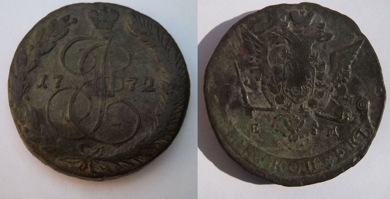 Поднял крестовый пятак 1730 со следами явного перечекана, а с какой монеты не пойму. На аверсе на 11 часов видна корона, на реверсе с 4 до 6 часов остатки надписи. Подскажите с чего перечекан и сколько примерно стоит? Для сравнения - пятак найденный рядом. ![]() ![]() ![]() ![]() Сообщение отредактировано G.Digger: Aug 11 2012, 18:13 |