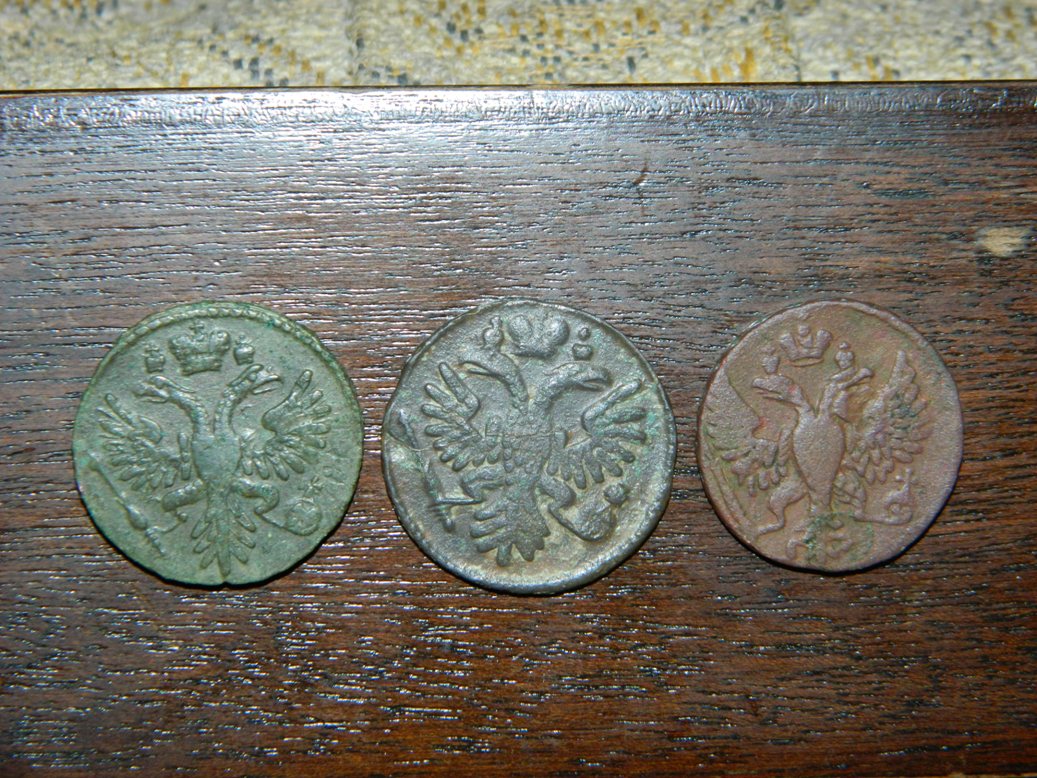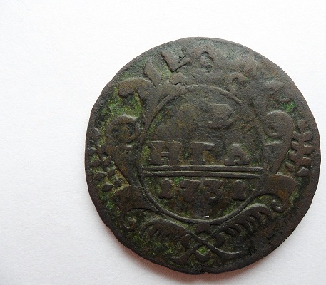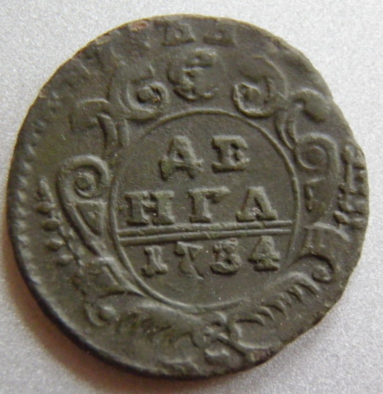 Доброго времечка! Попалась вот такая денга 1734.. Просматриваетсся перечекан из петровской копейки.. Вроде она пореже, чем более ранние перечеканы.. Сориентируйте, плиз, по рыночной стоимости