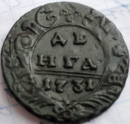 QUOTE(Fkduhi @ Feb 12 2013, 20:11) денга 1731г прошу определить и оценить. с уваж. Деньга 1731 года- перечекан, с розеткой из четырех лепестков, крест державы (плохо видно!) но моё мнение узорчатый, по Биткину имеет редкость R1, если выставить на аукцион, то 1000 рублей должна набрать, даже по более... (ИМХО)! -------------------- Если я выиграл Ваш лот,сообщите пожалуйста в личку.