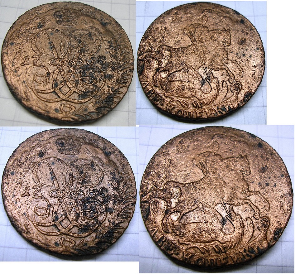 Подскажите пожалуйста, насколько редок данный перечекан, с копейки "Облачной" в 2 копейки 1758 г.? Гурт сетка, диаметр монеты заметно отличается от подобных двушек, всего 3,1см, толщина ребра монеты от 2 до 3мм.
