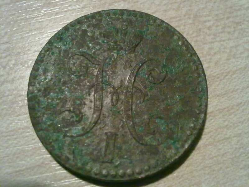 На сегодняшнем копе попалась вот такая интересная бракованная монета: одна сторона как и положено Н1, а на другой, как бы такой же чекан Н1,только зеркалом то бишь не выпуклый, а вдавленный вовнутрь! Я так понял, что под этой монетой оказалась еще одна монета, которая не отскочила...