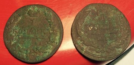 QUOTE(дядьсань @ Jan 2 2015, 12:21) Прошу высказать мнения по оценке Вот такой перечекан .С уважением. Перечекан с "облачной" копейки, не редкость,как мне видится 200-300 рублёв думаю потолок. |