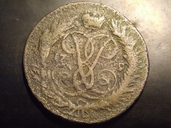 подскажите пожалуйста по монете видится перечекан облачной копейки и крестового пятака наверное монету несколько раз перечеканивали какой это год и стоит ли она что либо