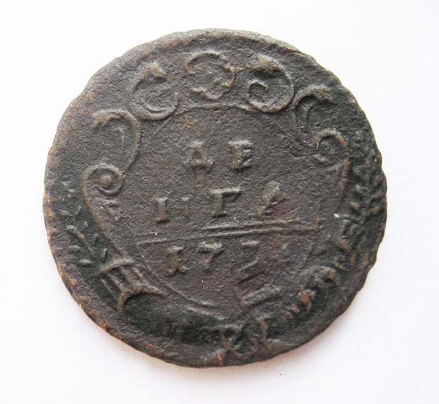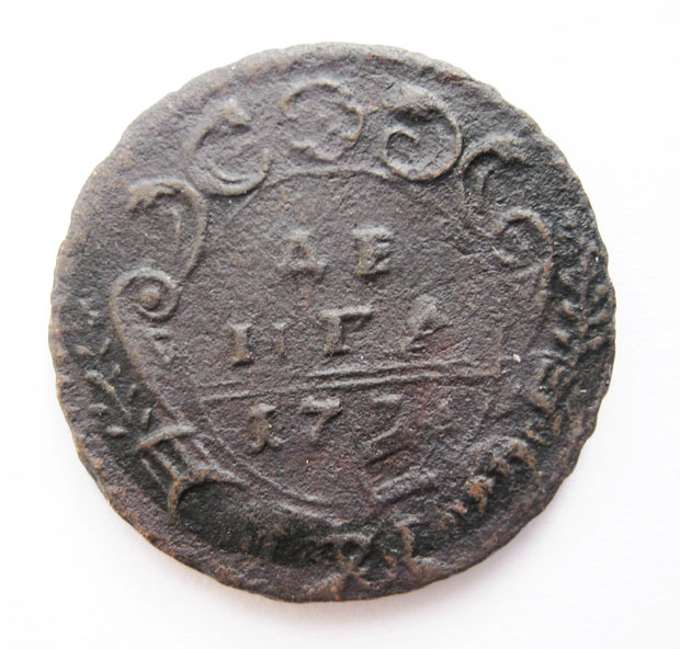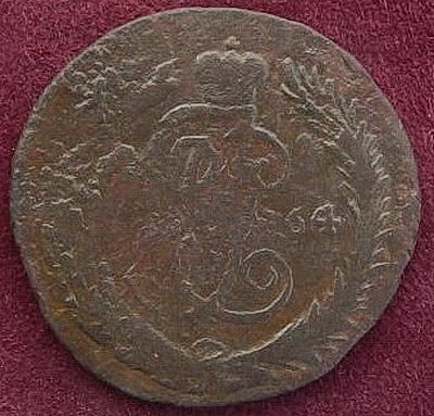1. 2-1757 перечеканена из облачной копейки 1755-57 гг.