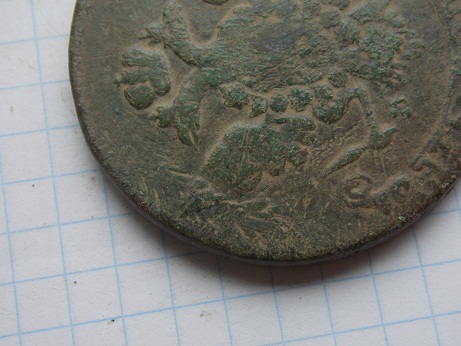Здравствуйте, попалась вот такая монетка. не чем не чистил. Думал кто то в обиходе помял, но самое интересное что все буквы просматриваются четко без заломов. Что скажите уважаемые знатоки?