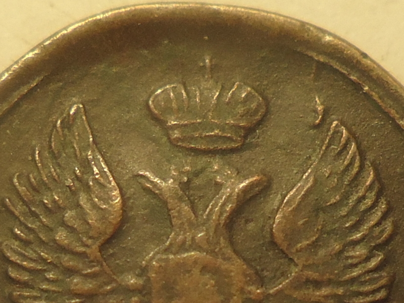 Интересная корона, правда, к теме перечеканов уже отношения не имеет. Как вероятная версия - резчик штмпеля проявил некую "вольность" в отношении короны, видимо, на его взгляд так красивше