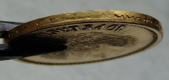 Попался в руки такой экземпляр. Вес в норме 8,58. Пробу 900 держит, проверял лично реактивом. Вопросы: Для чего был перечеканен настоящий червонец левым штемпелем и полностью перегурчен? Кто это сделал, кому нужно было? Когда сделали такой перечекан? Вложенные эскизы изображений -------------------- Если я выиграл ваш лот, прошу сообщить в ЛС