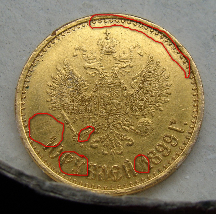 QUOTE(uvelir @ Feb 6 2017, 18:48) Понятно что не оригинальным штемпелем. Но вопрос то в другом. Смысл делать перечеканку фуфловым штемпелем по оригинальной монете. Если хотели уменьшение веса, то нет - вес в норме. Если хотели уменьшить пробу или отчеканить в не золоте - то же нет, пробу 900 держит четко. Слишком просто сказать - "это фуфло" . Обоснуйте пожалуйста!!! Покажите следы от оригинала? |