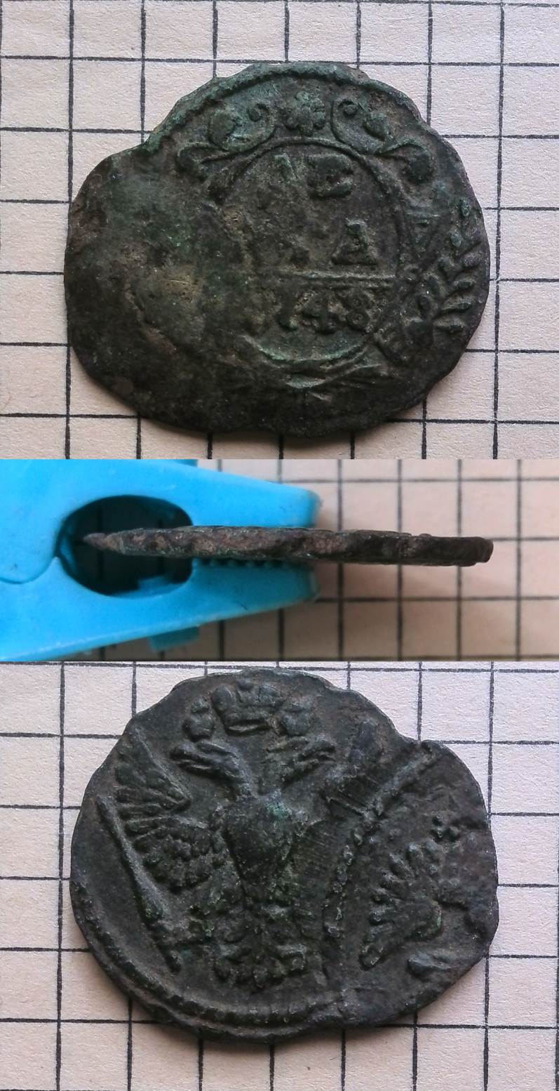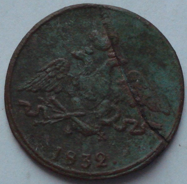 QUOTE(OLD Q @ Mar 10 2017, 07:32) Перечекан из двушки Елизаветы 1757 года. Зачекан брака. Прямые перечеканы были исключительно в 1763 году. Двушки Елизаветы I имели хождение на территории России в период правления Екатерины II такоеже как и две копейки 1763-96 годов. Так что перечеканивать их не было никакой надобности. А перечеканивались в две копейки 1763 года двушки Елизаветы I, которые прошли перегурчивание, но не успевшие стать 4 копейками 1762 года. |