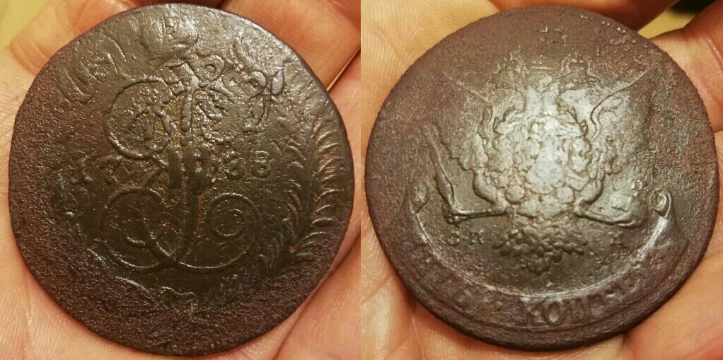 QUOTE(N.I.K. @ Oct 7 2018, 00:02) Всем доброй ночи. Подскажите что за перечекан. На одной стороне видны крупные буквы. На другой звёздочки. Заранее благодарен. 5 копеек 1788 спм перечеканены из 10 копеек 1762 (арматурный тип). |