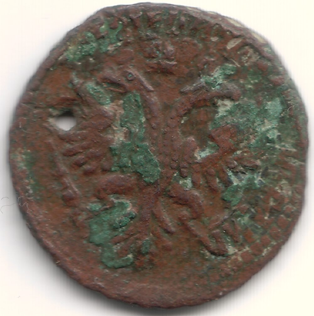 Но надо чистить, может и Павловский перечекан. Тогда цена монеты гораздо выше. деньга, к сожалению, дыркой уничтожена. |