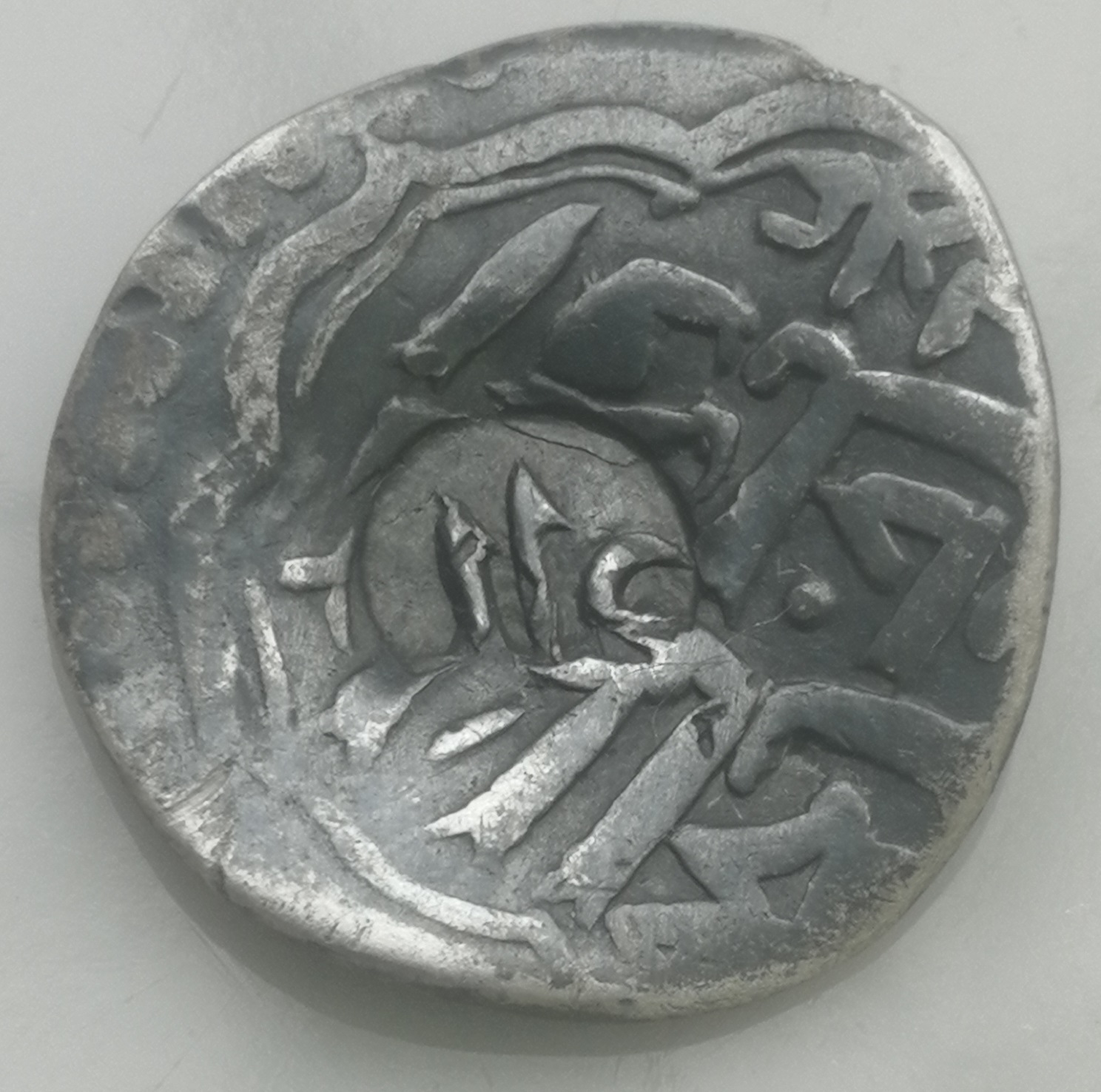 Знакомый нашёл такую странную битую-перебитую серебрушку. Такое впечатление, что по ней чеканом прошлись - десятки мелких ямок. Заднюю сторону не показываю, так как вообще нечитаема, а на передней проглядывают какие-то буквы по кругу, вроде как зеркально перевёрнутые. И в центре тоже пара крупных букв, возможно ЛА. Понимаю, что шансов определить что это было практически нет, но на всякий случай выложу. Вдруг у кого-то глаз настолько намётан, что сможет узнать, буду благодарен) Диаметр 16-18 (расплющена), вес 0,52г.