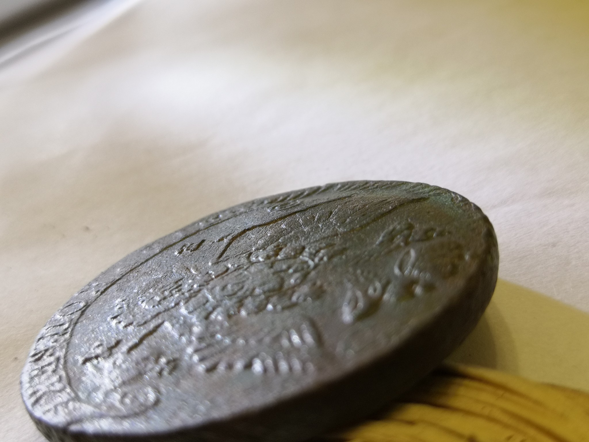 QUOTE(Мы не курим @ Nov 27 2020, 20:08) Если это так , как вы пишите ( следы выше поля монеты , т.е. выступают над полем , а не вдавлены ... мне по фото видится , что всё же "вдавлены) ... так вот , если следы " в позитиве" , то это ЗП ( зеркальный позитив) . Брак , встречающийся значительно реже чем ХС . Но , повторюсь , мне видится , что рисунок ветви "вдавлен" в поле . Даже если судить по теням . Приеду домой, сфотографирую чтобы видно было. Эта сторона с волной какой-то. |
