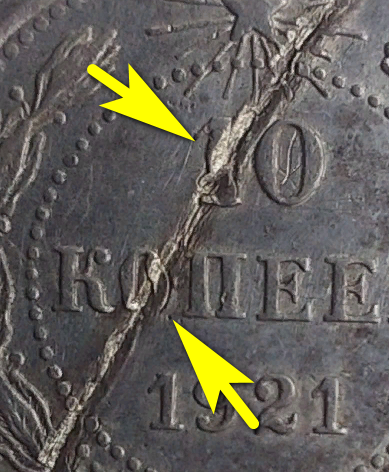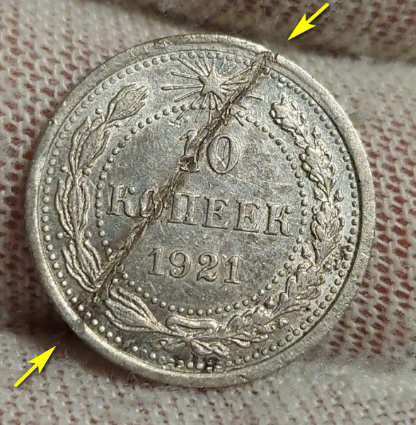 Всё же мне совсем не понятно как на аверсе появилось такое повреждение.