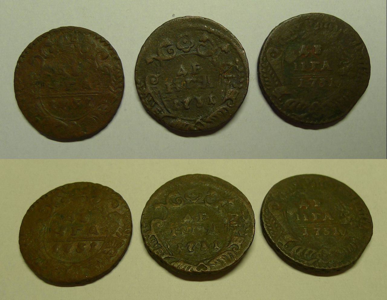 подскажите по перечеканам у трёх монет одного года разные штемпели - это нормально для того времени? ..на аверсе левой деньги вроде читается год(1716?) - на цену влияет? у средней деньги почти не видны две черты над датой, на фото вроде лучше видно - брак штемпеля или непрочекан? Вложенные эскизы изображений |