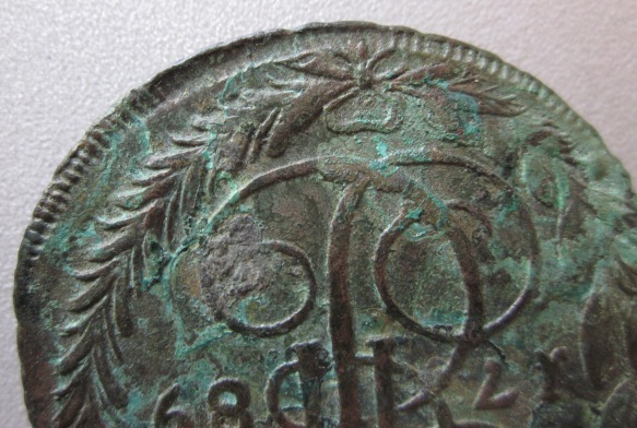 Почитав немного предполагаю что может быть перечекан с петровской копейки, но вот чтоб встречались перечеканы на 53 г не встретил.