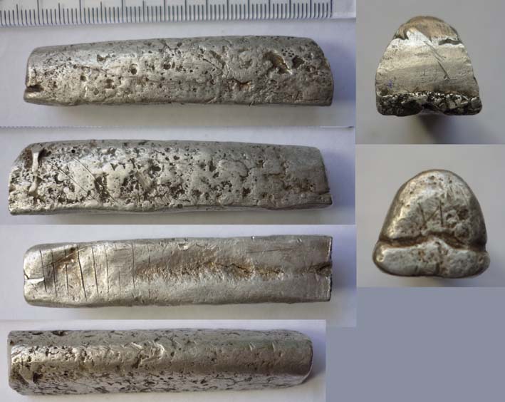 Да все просто.Количество насечек означало - какую часть (или в % отношении)серебра не досчиталась отлитая гривна в результате литья,т.к. неизбежно происходит физическое уменьшение металла(на испарение,на окисление и т.д.).Например 10 насечек(одна обязательно наклонная-первая или последняя) означает ,что вылитая гривна на 1/10 часть уменьшилась по сравнению с массой серебра перед плавкой.Если вес гривны равен 200гр.,то на нее пошло 220 гр сырья.