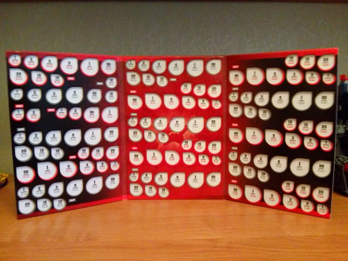 32. Картонный альбом под юбилейные 1,3,5руб.СССР на все 64 юбилейные монеты СССР + 10, 15, 20 и 50коп. 50 лет Советской власти, цена 330руб.+пересыл 110руб.