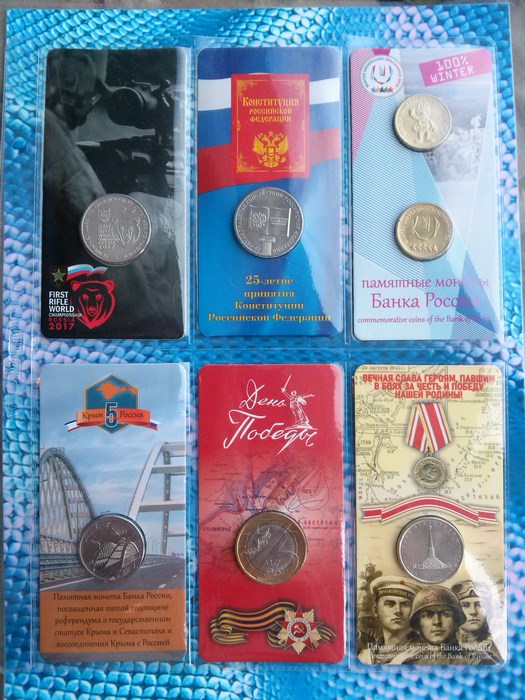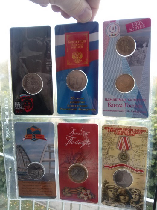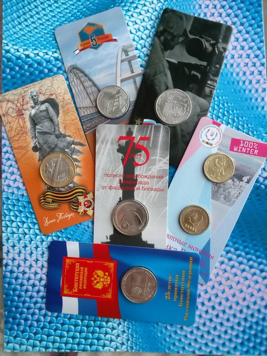 - "170-летие Русского географического общества" 2015 год; - " 150-летие основания Русского исторического общества" 2016 год. - 2-рублевых монет серии: "Города-герои", выпущенных в 2000 году (7 монет), а также запланированный выпуск в 2017 году двух 2-рублевых монет "Керчь" и "Севастополь" - 2-рублевой монеты посвященной 40-летию полета Ю.А. Гагарина в космос, 2001 г. выпущенную двумя монетными дворами ( 2 монеты) - 1-рублевой монеты посвященную 200-летию со дня рождения А.С. Пушкина, 1999 г., выпущенную 2 монетными дворами (2 монеты) - 1-рублевой монеты посвященной 10-летию СНГ, 2001 г. (1 монета) - 1-рублевой монеты "Графическое изображение рубля в виде знака", 2014 г.(1 монета). Стоимость 1шт. 150руб.+пересыл 100руб. Сообщение отредактировано derezel: Sep 16 2017, 19:54 Вложенные эскизы изображений -------------------- Карта СБ 2202.......6670 иных нет, будьте бдительны!!!