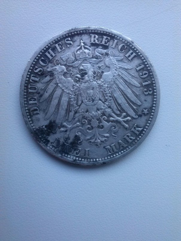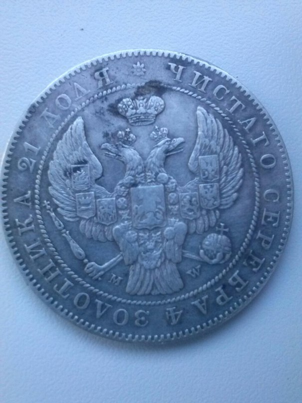 Приветствую! Года полтора назад, нашёл в поле Николаевский рубль 1896 года. Радости не было предела, даже расцеловал его ( первый рубль ). Рубль был в синеватой патине. Долгое время не чистил и вот с пол года назад решил почистить. Макнул в нашатырь, после промыл водой и почистил содой. Цвет с голубого поменялся на золотистый. Как бы я его не тер, как бы не полировал, цвет остался золотистым. Вес монеты 15.75 гр. Как вы считаете, что за металл может быть? Я склоняюсь к меди.