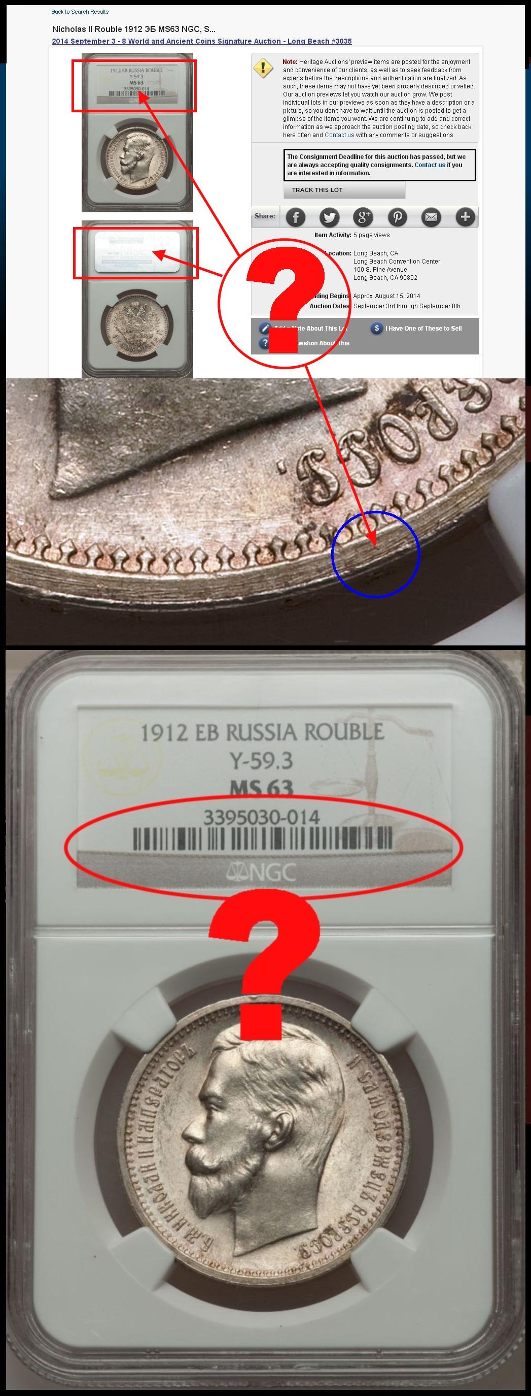 QUOTE(Filat @ Jun 23 2015, 06:17) NGC + Heritage Auction: "Rouble 1912 … " → Протяженных борозд дугообразной формы, на канте подлинных рублей Российской Империи, НЕТ и БЫТЬ НЕ МОЖЕТ. Против утверждения: "Протяженных борозд дугообразной формы, на канте подлинных рублей Российской Империи, НЕТ и БЫТЬ НЕ МОЖЕТ" конкретные возражения у не Шизофреника и не Бота extrazm(а) есть? Пока ждем ответ extrazm(а) на мой вопрос, демонстрирую очередное фуфло от МиМ(а). Вложенные эскизы изображений -------------------- ЮВ