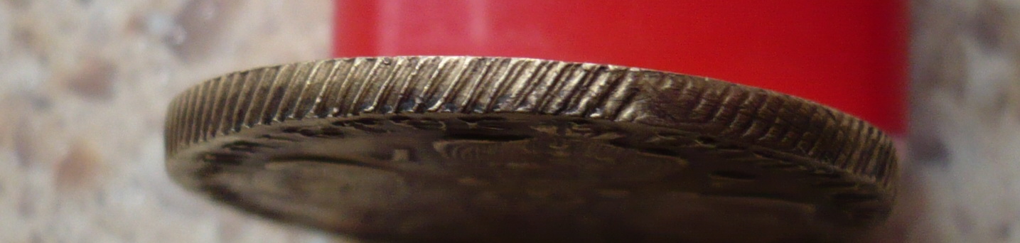 кто что скажет правильная тут монетка? замылиные фото гурта. и кривой вензель. это говорит о том что это литье. или я ошибаюсь. на соседнем уже обсуждали такие монетки. -------------------- То Что не продал! Продам