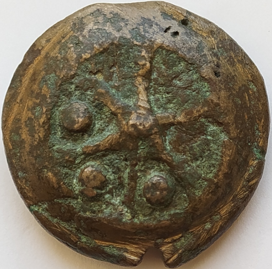 QUOTE(Славяне @ Sep 2 2022, 21:44) Добрый вечер , Может знает кто , что из себя представляет сей предмет ? Вес 64 гр., диаметр 38-39 мм., материал бронза . Может быть весовая гирька. |