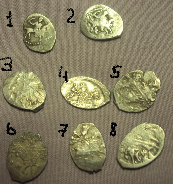 №2 Сабельная копейка Ивана Грозного КГ73 Москва №3 Копейка Бориса Годунова КГ232 Новгород №4 Копейка Лжедмитрия 1 КГ247 Новгород (9 ст. р.) №5 Копейка Бориса Годунова КГ193 Псков №6 Копейка Бориса Годунова КГ173 Москва №7 Копейка Бориса Годунова КГ224 Новгород (8 ст.р.) №8 Копейка Ивана Грозного КГ87 Новгород а цены на чешуйки, смотря что найдешь от 10 и более рублей самое главное что серебру время ни по чём -------------------- Качает ветер плавно провода, перебивая свет.