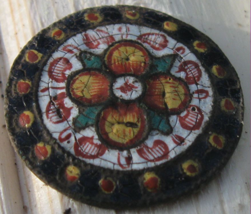 По историч. данным в Соликамский район перебирались Вологодские промышленники , которые занимались в районе добычей и переработкой соли . Это подтверждает найденная накладка с Сольвычегорскими эмалями .