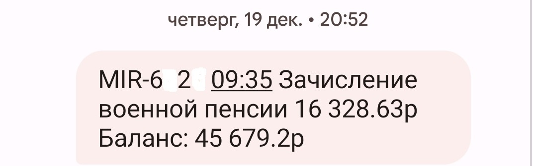 QUOTE(Prihod @ Feb 15 2025, 12:49) Так все зависело от Вас, раз погоны одели. И не надо сейчас обвинять государство, кто служил достойно у того и пенсия соответствующая. Ну раз Вы,увидели в моем сообщении,обвинение Государства,это Ваше право. |