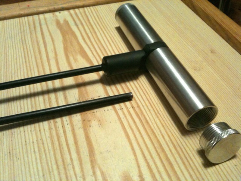 А я пользуюсь шомполом для пневматики. Они есть и разборные и нет. У меня жесткий. Диаметр 4мм. Рукоятка уже есть. Только ее пришлось закрепить, а то на шомполах она вращается. 150руб все удовольствие.