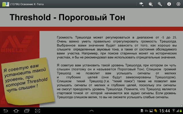 QUOTE(nipson @ Feb 13 2016, 14:53) Доброго времени суток! Сильно не пинайте, не нашёл где спросить, направьте если что На всех металлах пороговый тон не только бесполезен,но и вреден т.к.из-за шума можете пропустить тихие глубокие сигналы |