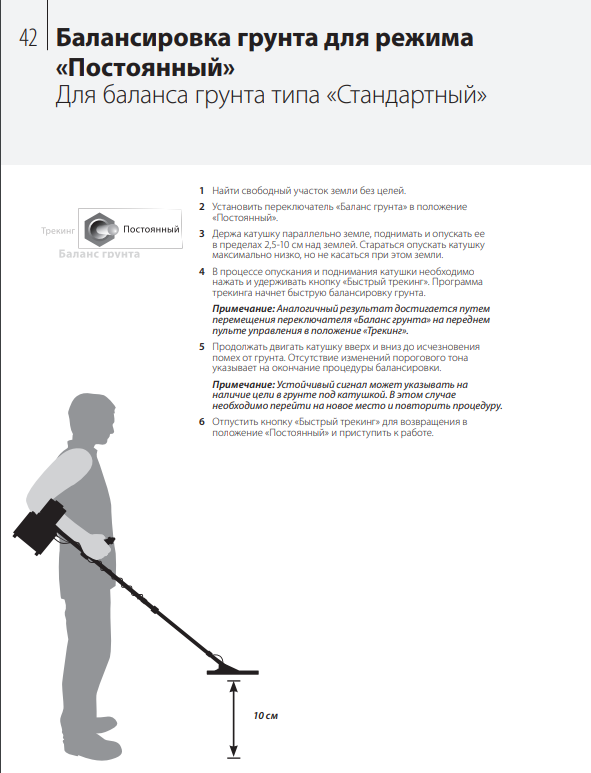 QUOTE(mykov @ Nov 8 2020, 05:09) Подскажите, как вы делаете отстройку ГБ если переключатель ГБ на fix? Помахали катушкой над землёй и нажали кнопку на рукояти или есть нюансы? Можно ли в приборе как-то увидеть значение ГБ и что с ГБ происходит во время отстройки? Страница 42 инструкции. 1 Найти свободный участок земли без целей. 2 Установить переключатель «Баланс грунта» в положение «Постоянный». 3 Держа катушку параллельно земле, поднимать и опускать ее в пределах 2,5-10 см над землей. Стараться опускать катушку максимально низко, но не касаться при этом земли. 4 В процессе опускания и поднимания катушки необходимо нажать и удерживать кнопку «Быстрый трекинг». Программа трекинга начнет быструю балансировку грунта. Примечание: Аналогичный результат достигается путем перемещения переключателя «Баланс грунта» на переднем пульте управления в положение «Трекинг». 5 Продолжать двигать катушку вверх и вниз до исчезновения помех от грунта. Отсутствие изменений порогового тона указывает на окончание процедуры балансировки. Примечание: Устойчивый сигнал может указывать на наличие цели в грунте под катушкой. В этом случае необходимо перейти на новое место и повторить процедуру. 6 Отпустить кнопку «Быстрый трекинг» для возвращения в положение «Постоянный» и приступить к работе. P.S. Иногда это не быстрый процесс. и раз от раза это может занимать разное количество времени (на одном грунте 3-5 секунд на другом больше) смысл в том чтобы при этом действии добиться стабильного ровного звука. Порой балансировку приходится делать очень часто. (некоторые операторы не придают этому значения что в конечном итоге влияет на результат) Сообщение отредактировано NuggetFinder: Nov 20 2020, 09:59 |