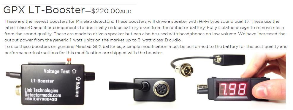 Основное: Громкости штатного усилителя бывает недостаточно при работе с высокоомными наушниками в шумных местах, а так-же часто недостаточно при работе с внешним димнамиком. Для работы с парой динамиков, подвешенных на лямках, усилитель практически не справляется. Наушники Minelab работают в МОНО режиме, динамики соединены последовательно. Сторонние наушники могут быть подключены не правильно. Жалоб на качество звука и помехи со штатным усилителем нет, только на недостаточную мощность и громкость. Изучив множество информации касаемо сторонних усилителей, пришел к неутешительным выводам. Большое количество жалоб пользователей на качество звука и помехи. Вроде-бы усилители справляются со своей задачей, громкости и мощности хватает. Многие требуют внешнего питания. Старые модели чаще всего выполнены на древней микросхеме LM386. В новых чаще стали применять цифровой усилитель D-класса. Мощность всех аудио-бустеров лежит в диапазоне от 1Вт до 3Вт на нагрузке 4-8 Ом. Большинство усилителей имеет свой регулятор громкости. Начал копать глубже в схемотехническое решение, почему нет жалоб на качество звука на штатный усилитель, и много нареканий на сторонние. Почему многие бустеры работают либо через переходник, либо с некоей доработкой штатной батареи с усилителем, либо без доработки с пустой батареей 4000-ка? Проблемы с согласованием! Пришлось немного углубиться в теорию, поизучать предложения усилителей для аудиофилов, и т.д. И решение оказалось на поверхности. Усилитель в батарее GPX не усиливает, а наоборот подавляет помехи, образуемые от наводок в кабеле и по питанию. Сторонние усилители в основном их усиливают вместе со слабыми сигналами, из-за этого образуются лишние шумы, и проблемы с распознаванием самых тихих целей. Родной усилитель обладает очень не плохими параметрами, 0.1% искажений, класс AB, маложрущий, малошумящий. Мощность до 1Вт на нагрузке 8 Ом. Мало сторонних усилителей могут конкурировать по уровню подавления помех, уровню шума и искажений. Нашёл решение как доработать штатный усилитель из батареи 4500,4800, 5000, увеличив выходную мощность на 80%, сохранив остальные параметры. Так-же проанализировав опыты австралийцев (кстати обошлись они в несколько сотен долларов), понял, какое должно быть усиление, что-бы не было необходимости использовать внешний регулятор громкости, и хватало встроенного в прибор для всех вариантов и режимов работы. Выбор применимых микросхем крайне мал. Усилители для аудиофилов выпускаемые серийно не подходят для этой задачи, как и усилители D-класса (к сожалению это так, и мой опыт с GP оказался не слишком удачным). В общем касаемо схемотехнического решения усилителя и самой АКБ практически всё решено. По конструктиву наверно нужно делать блок усилителя с беспроводным передатчиком, с возможностью подключения наушников и внешних динамиков 1 или 2 шт, и сменные АКБ, подключаемые к этому модулю. Всё в герметичном прочном исполнении. По радионаушникам пока окончательного решения нет. PS: пока искал инфу, обнаружил словесное описание одной из важных доработок, которую делают австралийцы при тюнинге самого прибора, влияющую в целом на его стабильность и чуйку к слабым сигналам. Если вкратце, добавляется дополнительный регулятор на панели, которым компенсируется дисбаланс и токовый дрейф при работе прибора, к