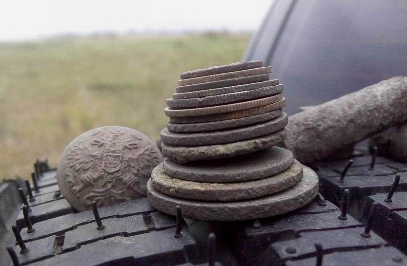 Всем привет! Читаю отчеты камрадов о выездах и завидую чернющщей жабою! Что то не клеится у меня с полем, не вырвусь никак. То времени нету, то денег, то погоды не позволяют. Так, наверное, и не вырвусь в этом году! Да и желание лезть в стылую грязь ноябрьских полей какое то очень слабенькое. На уровне горемычного вздоха. Глянешь в окно, едя по делам в своем верном автомобиле , что неспешно жужжит моторчиком и трансмиссией по асфальтовой тропке шоссе, на черные да коричневые трясины размокших полей. Посмотришь как они наползают на обочину, пузырясь жидкими говнами грязи, с редкой серою пеной грязного не стаявшего снега, в порезах рытвин оплывших грунтовок и содрогнешься, покрывшись вдруг зябкими мурашами, не смотря на сухую жару нагретого салона машины. А потому что представил ты себя уже посреди этого вязкого болота, в насквозь промокшей камуфле, дрожжащим под злющим и острым ледяным ноябрьским ветром, что проходит сквозь тебя, не задерживаясь, как рентген на флюорографии. Стоишь ты в этой красоте, сжимая синими ледышками рук, облепленных грязевыми обмылками мокрых перчаток, такие же склизкие от грязи лопату да рукоять МДшника. Сверху из серого и мокрого неба, барабанит и стекает по капюшону верхонки, редкий и мелкий дождик со снегом. Стекает, постепенно пропитываясь глубже сквозь непромокаемую ткань куртки, неспешно и верно стараясь намочить твою дрожжащую тушку. А затем, погревшись от нее, паром вернуться на улицу. На ногах у тебя - огромные фрикадельки, слепленные из чернозема, глины и дохлой жухлой травы. Внутри этих мегафрикаделек - размокшие и размякшие берцы, в них полурастворившиеся носки, а в носках - твои ноговые ступни. Они - белые с синим отливом, задумчиво перемешивают меж пальцев жидкую кашицу грязи... Бррр... Чета неохота! Я старый копарь! Я две катухи на приборе о траву истер, две лопаты до рукояти о землю сточил, три пары берцев по полям истоптал! Трех земляных дедов до третьей стадии алкоголизма споил и с белочками перезнакомил. Я ямок выкопал столько, сколько страна Беларусь под посадку картофеля, за всю свою историю не копала! А уж числа закопаных ямок и на картофель России бы хватило! Спасибо многочисленному и безобразному зверю - свинорою. Короче - я старый и не поеду! И пусть зазывно мельтешат с планшета, перед носом, картинки с полуподпольных в нынешней России сайтов, с прекрасными красавами! Их округлые стати заставляют чаще биться сердце и вызывают желание обладать ими всеми! Привезти прямо домой и обладать! Сжимать их в руках, нежно гладить их пальцами, ухаживать и восторгаться их красотой и совершенством... Нет! И не соблазните! Я старый солдат и не знаю слов любви! Сдались мне эти картинки с копарьских сайтов и монеты эти то же сдались! Не поеду! К чему полоскать соплями на ветру и мокнуть в осадках? К чему мне эта грязелечебница в компании очень подозрительных личностей? Мне вообще кажется, что эти личности - страшно сказать, копатели! Возможно и черные! Ну его к лешему! Пора завязывать с ползаньем в полях. Холодно и неохота! Чистый, светлый, а главное - комфортабельный и теплый гараж! Вот лучший выбор, истосковавшегося по уюту и теплу, покорителя полей, огородов и немного фундуков! Сухое, чуть с дымком, трещащее тепло горящего камина. Большой стол, уставленный литром водки, красным помидором и шматом сала. Довольные лица 