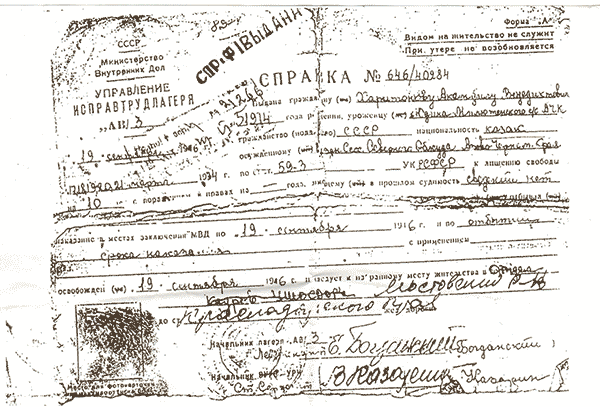 Всеобщая география Российской Империи. Зябловский Е.Ф. 1807г.: ![]() Учебник Константина Арсеньева. 1818г. С-Петербург: ![]() География Российской Империи. Павловский И.Я. 1843г. (за этот труд автору было объявлено Высшее благоволение 5-го мая 1843 г.): ![]() «Всеобщий географический и статистический словарь» 1843г.: ![]() 1939 г. Свидетельство о Рождении. Графа национальность родителей - казак, казачка: ![]() 1946 год. Справка МВД СССР об освобождении. Графа "национальность" – казак: ![]() Сообщение отредактировано alconost: Jan 11 2013, 21:53 |