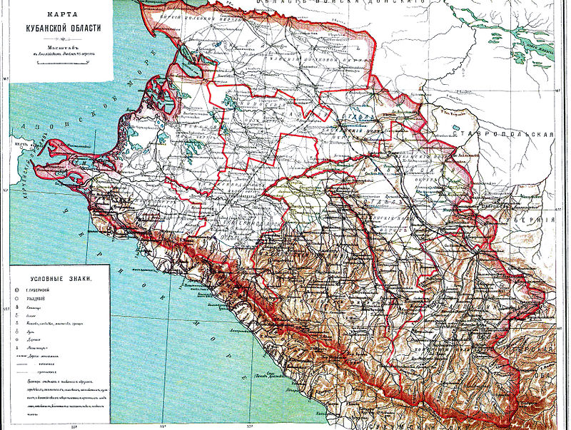 Кубанское казачье войско (Краснодарский, Адыгея, Ставропольский, Карачаево-Черкесия, немного юг Ростовской области). Так же уничтоженное казачье автономное образование.
